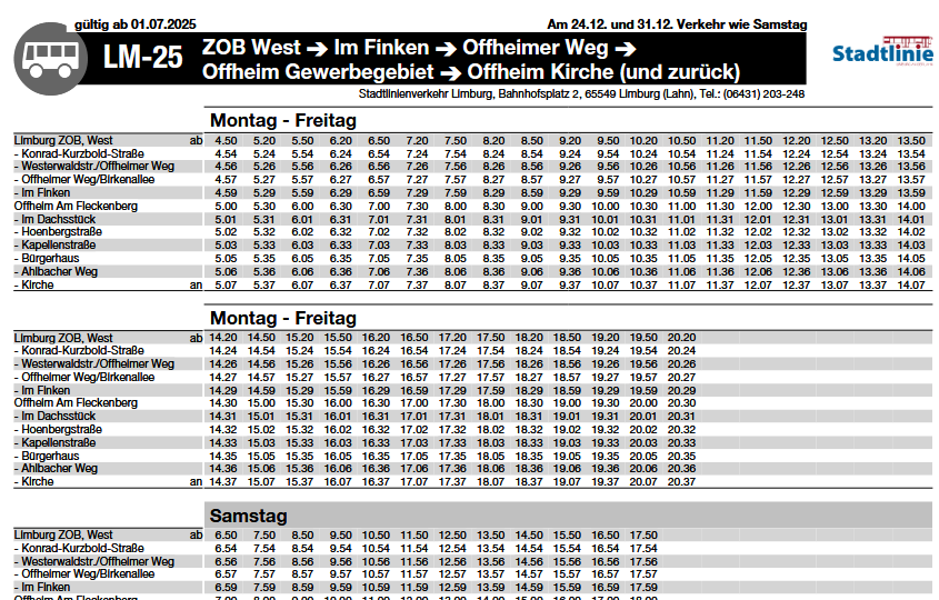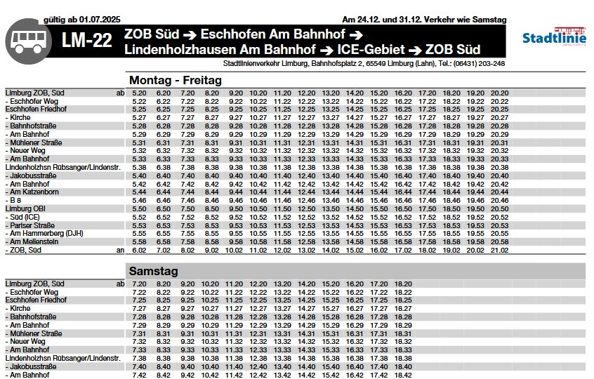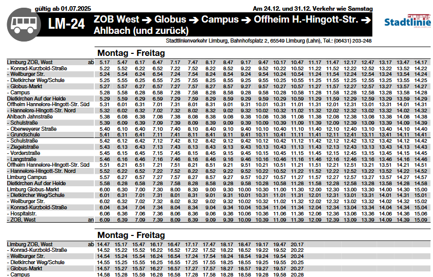 Neben dem bestehenden Stadtgebiet, das weiterhin vollständig – und jetzt sogar mit 34 zusätzlichen Haltestellen – bedient wird, fahren unsere Busse jetzt auch in die Stadtteile Ahlbach, Dietkirchen, Eschhofen, Lindenholzhausen, Linter, Offheim und Staffel.
